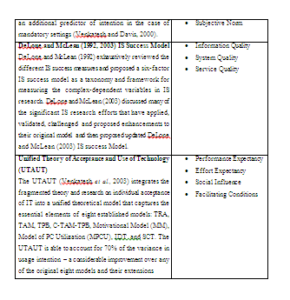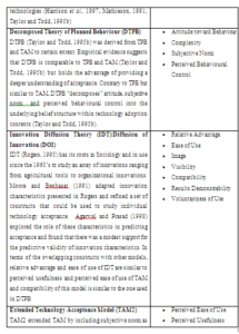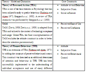 Table 2: Contributing Theories of Technology Accepted Models and Core Constructs