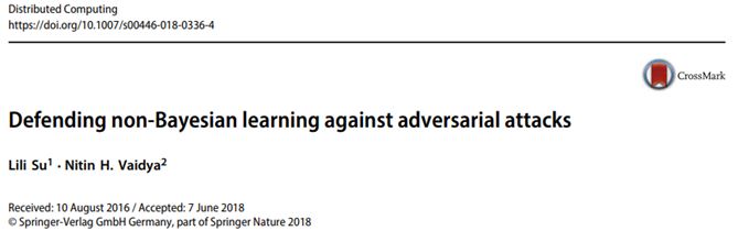 Su & Vaidya,(2019) have proposed a novel technique to provide security against adversarial attacks. The models collect data continuously to understand the characteristics of the attacks and hence train continuously. However, there is a problem of non-Bayesian learning in the network. This paper solves this problem by considering the adversarial agents for the analysis. Lots of Byzantine faults are present which must be addressed. Two rule based approaches are proposed and the approach works even when there is no data transfer. It has been seen that there is an adjustment between the ability to achieve consensus and the problem of network detectability. This problem will be addressed as a future scope.