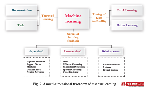 ML can be divided into three major categories based on the quality of the input available to a learning system: supervised learning, unsupervised learning, and reinforcement learning [5]. ML can be divided into two types: representational learning and task learning, depending on whether the learning goal is to learn particular tasks using input features or to learn the features themselves. Each Machine Learning Algorithm can be classified in a variety of ways.